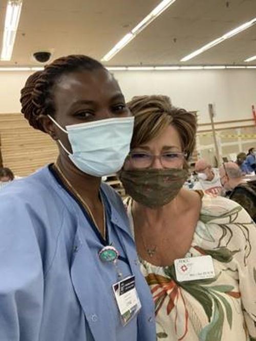 Photo Caption: HACC Nursing student Omotolani Akintade, left, and Monica Filburn, chair of HACC’s Nursing Department, at a vaccine clinic in Carlisle.